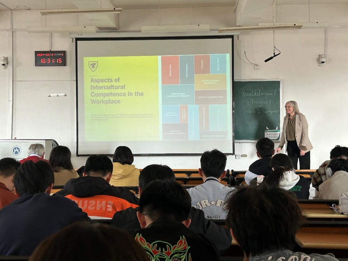 随着全球化的迅速推进,各国越来越需要具备跨文化交际能力的人才。在学生留学及个人专业发展讲座中,Jennifer介绍了海外学习经历对学生语言能力和跨文化交际能力的提升作用,为学生讲述了真实的留学生海外学习经历及个人感悟。