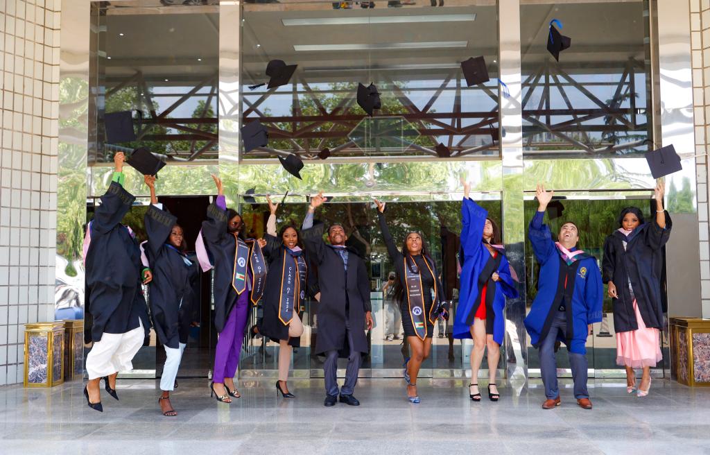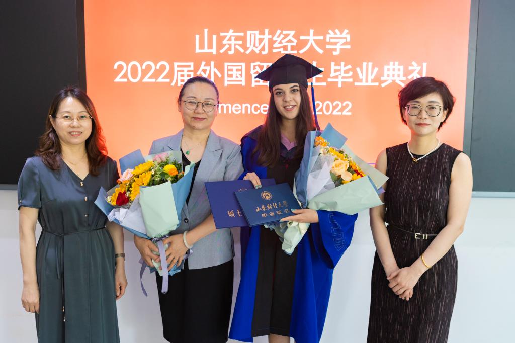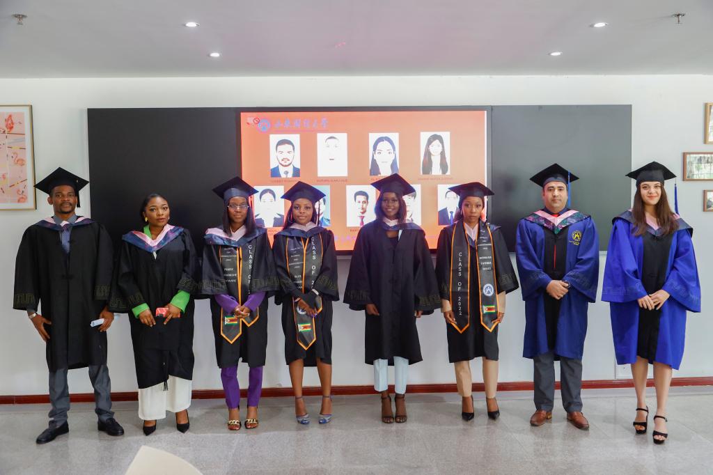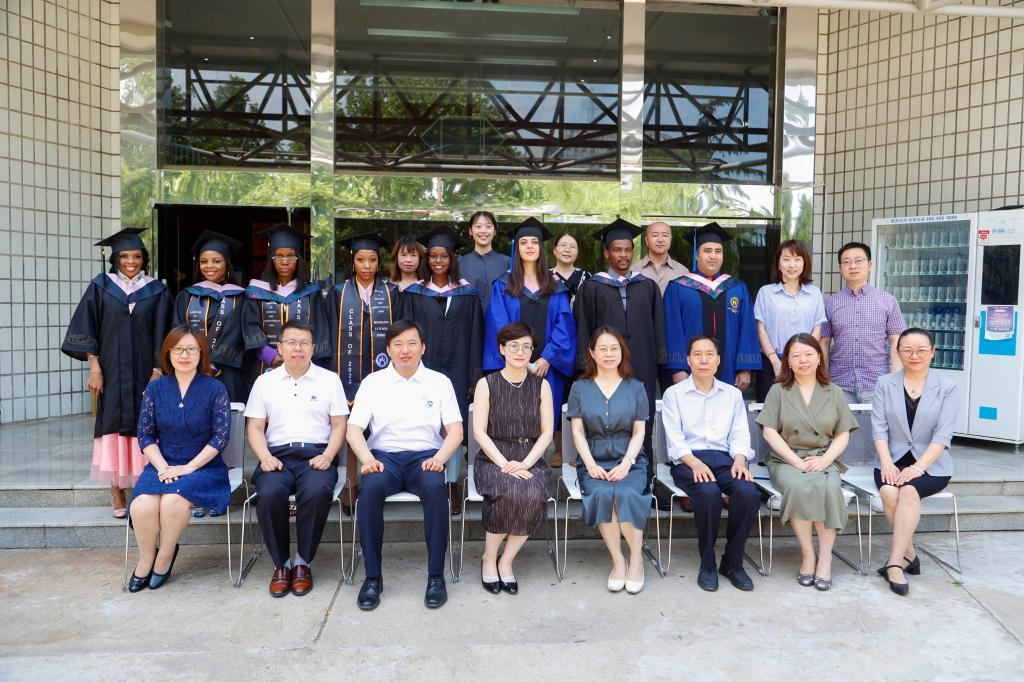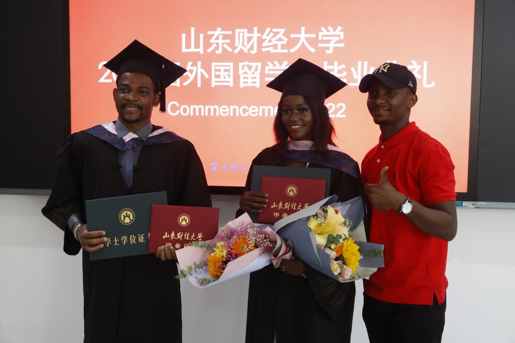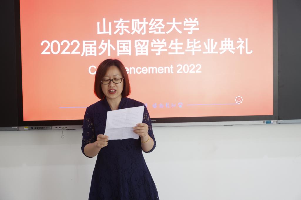 2022年6月21日上午11时,学校2022届外国留学生毕业典礼在舜耕校区国际学生公寓阅览室举行,13名因疫情滞留境外不能亲临现场的毕业生通过钉钉直播云毕业。