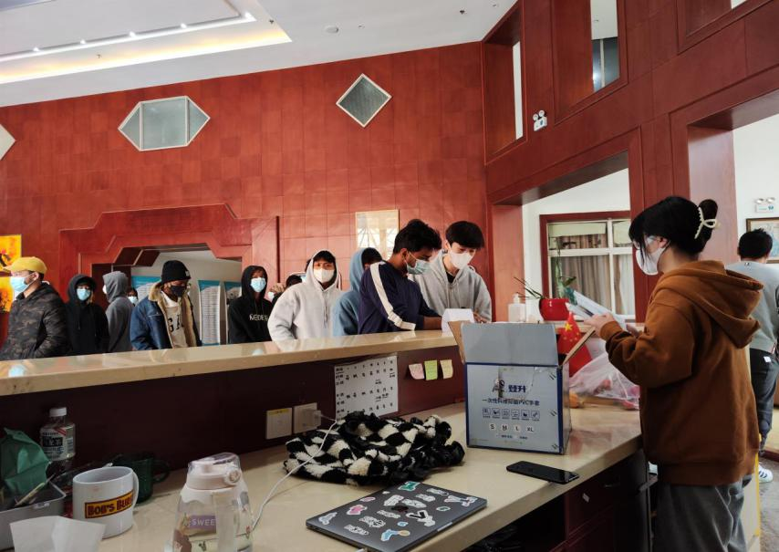 3月30日,全校下达紧急防疫任务,全院师生迅速进入备战状态。通知下发后,杨鹰老师立即响应,承担起留学生工作办公室的疫情防控工作:首先召开留学生会议,强调本轮疫情防控的重要性,提醒大家严格遵守防疫要求。其次向学院领导申请“留学生连续三日核检”,并获疫情专班批准。4月2日,学院领导决定购进并发放一批防疫物资和生活用品,保障留学生的基本生活,让留学生在异国他乡也能感受到家一般的温暖。