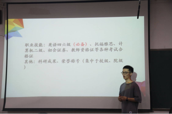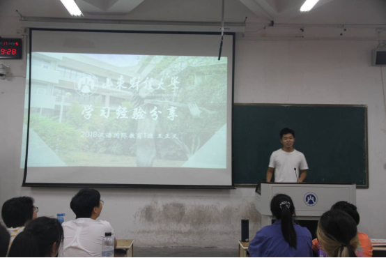 学院上届学生会副主席、现已获得保研资格的2018级汉教一班王正义同学向大家介绍了自己的学习方法与规划以及如何平衡学生工作与学业,提醒同学要从大一开始认真学习,把握好时间,在保证成绩的同时积极参加各类活动,丰富自己的大学生活。