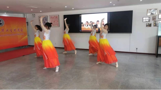 欢送环节,在校的学弟学妹们为毕业的学长学姐们带来了精彩的文艺演出。演出由20级中加班颜慕依主持,STDC舞社带来了舞蹈表演《霍元甲》,《灯火里的中国》;李柯萱,郭雨轩等带来了歌曲《凤凰花开的路口》,翩翩动人的舞姿和动人心弦的歌喉温暖了在场所有人的心,表达了对即将迈上征程的学长学姐们最真诚的祝福。