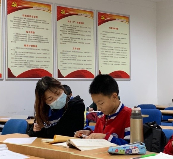 在“用爱注满橙色青春”——济南市市中区舜玉社区环卫工子女一对一志愿辅导活动中,志愿者们采用线上线下相结合的方式,以舜玉社区活动室为线下志愿服务场所,网络平台为线上沟通桥梁,周六上午是固定活动时间,每周进行20人次,人均2小时的学习辅导,辅导范围广泛,既包括小朋友作业难题,还有课外阅读、兴趣辅导,特别是注重小朋友价值观的养成,将“立德树人,青协筑梦”的社训贯穿在与小朋友相处之中。