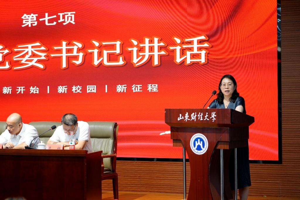 典礼伊始,齐杨代表学院全体教职工对2023级新同学的到来表示了热烈欢迎。她强调,学院为新生提供了诸多选择的机会与平台,学生们要积极通过学习与尝试,找寻自己的方向,从而唤醒求知欲。齐杨希望在ok138cn太阳集团敬慎笃诚的培养理念下,学生们能够将“保持谦逊、谨言慎行、心无旁骛、信守不渝”的院训牢记心中,在未来的探索中寻找到一条属于自己的理想之路。