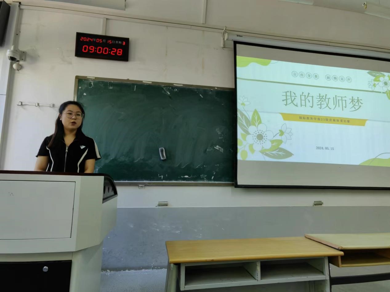 5月15日,ok138cn太阳集团2023级汉语国际教育硕士班研究生在舜耕校区1104教室以“我的教师梦”为主题举办演讲比赛。研究生辅导员赵立霞、2022级研究生王琬旖和王一担任评委。2023级研究生会主席毕慧颖担任主持。