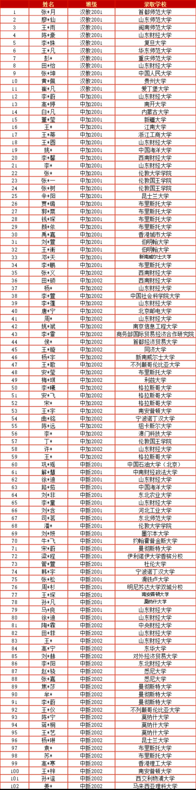 我院2024届共217名本科毕业生,共有102名学生将赴国内外高校深造,占2024届本科毕业生总数的47.00%。其中49人考取复旦大学、同济大学、中国人民大学、南开大学、中央财经大学、西南财经大学、中南财经政法大学等国内高校;53人将赴伦敦大学学院、墨尔本大学、悉尼大学、新南威尔士大学、爱丁堡大学、伦敦国王学院等世界知名学府攻读硕士学位。其中,经济学(中加合作)专业48人,专业深造率52.17%;会计学(中新合作)专业43人 ,专业深造率44.21%;汉语国际教育专业11人 ,专业深造率36.67%。
