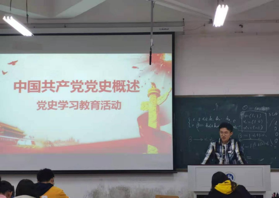 为了庆祝中国共产党成立100周年,加强党的知识普及促进本班同学的交流沟通,提高同学们的学习热情,2020级中新会计2班于4月21日下午4点半在舜耕校区6115教室开展了中国共产党党史概述党史学习教育主题班会。班会由班长李耀阳和团支书袁航共同主持。辅导员王坤老师及本班全体同学参加。