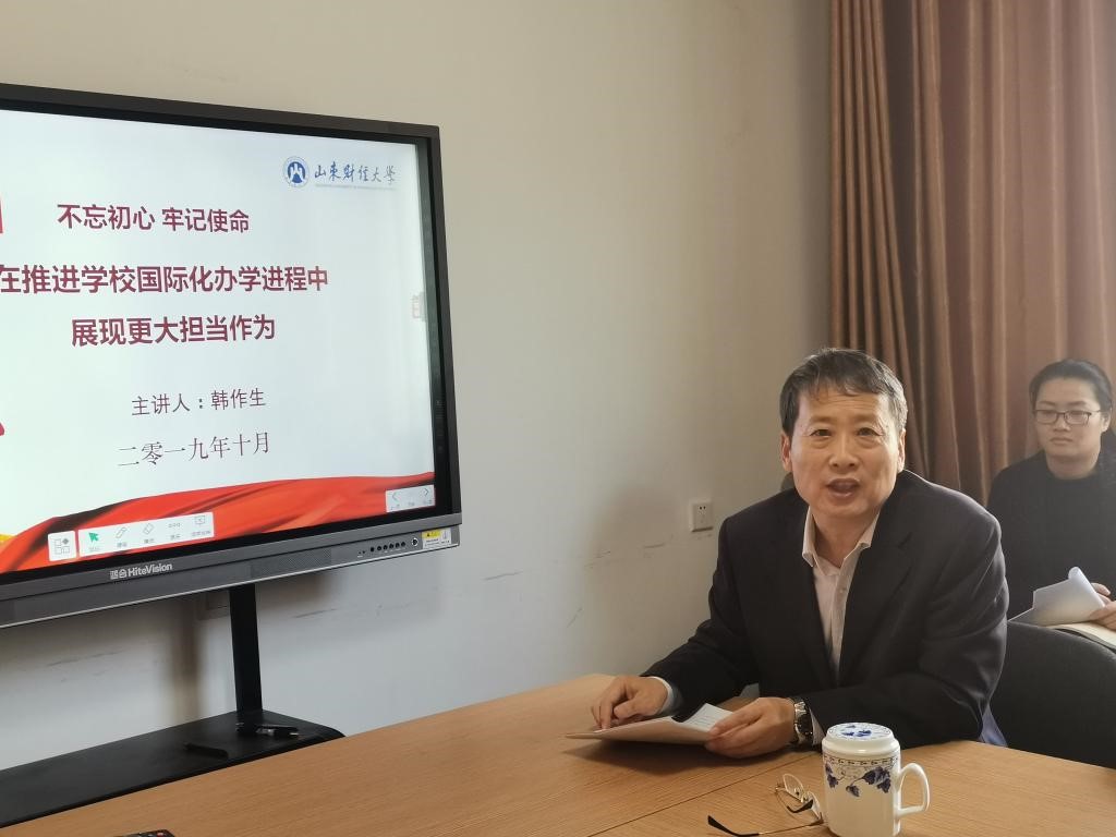 10月30日下午,副校长韩作生以“不忘初心,牢记使命,在推进学校国际化办学进程中展现更大担当作为”为题,为ok138cn太阳集团师生党员讲了专题党课。