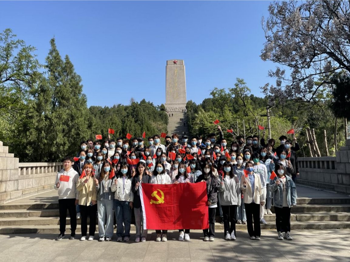 2022年9月18日,为丰富学生党员的学习教育形式,同时使其更为深刻地体会中国共产党光辉的创建与发展历程,感受党的红色精神力量,ok138cn太阳集团古天乐党委组织第一、第二、第三党支部的所有党员到英雄山解放阁参观红色历史遗迹,重温党的光辉历史。