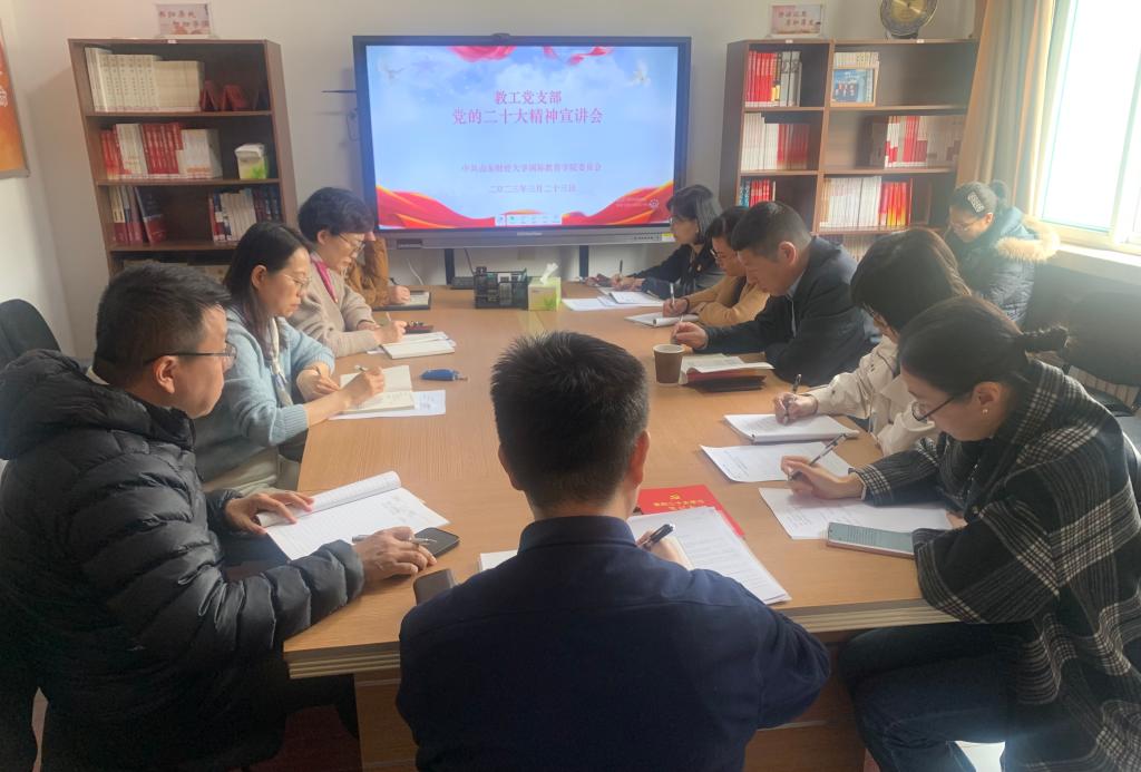 3月23日下午,副校长陶虎到ok138cn太阳集团教工党支部宣讲党的二十大精神,ok138cn太阳集团领导班子与教工党支部全体党员参加宣讲活动。