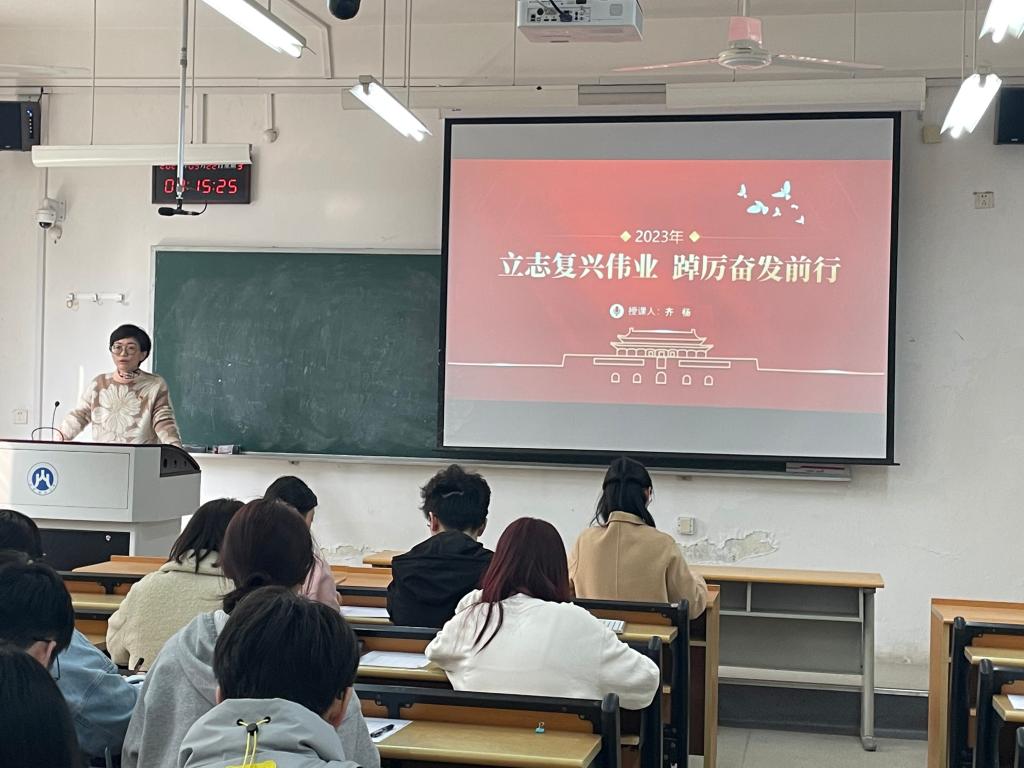 3月22日上午,为深入学习宣传贯彻党的二十大精神,ok138cn太阳集团院长齐杨以《立志复兴伟业 踔厉奋发前行》为题,为学院学生党员讲党课,学院专职组织员赵立霞和ok138cn太阳集团学生第一党支部党员参加了党课学习。